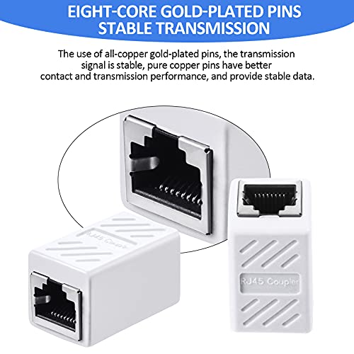 Accoppiatore RJ45, Adattatore di Estensione Ethernet Connettore di Rete per Cat7/Cat6/Cat5e/Cat5 Accoppiatore Cavo di Rete Ethernet da Femmina a Femmina (Bianco, 10 Pezzi)