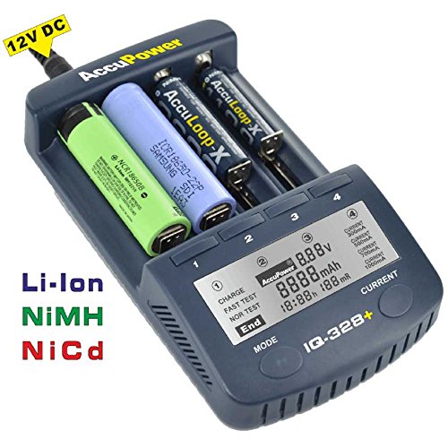 AccuPower Li-Ion/Ni-MH/Ni-Cd Caricabatteria IQ328 function display + / scarico