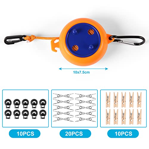 Accwork Stendibiancheria Retrattile da Campeggio 8m -Stendibiancheria Portatile con 10 fibbie fisse, 20 Clip in Metallo, 10 Clip di Legno e Borsa di Stoccaggio