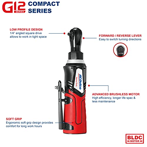 ACDelco ARW1218-K18 G12 Lithium-Ion 12V (10.8V) 3/8" Extended & 1/4" Electric Cordless Ratchet Wrench Set Power Tool Combo Kit | Tool Set Includes Battery, Charger & Canvas Bag