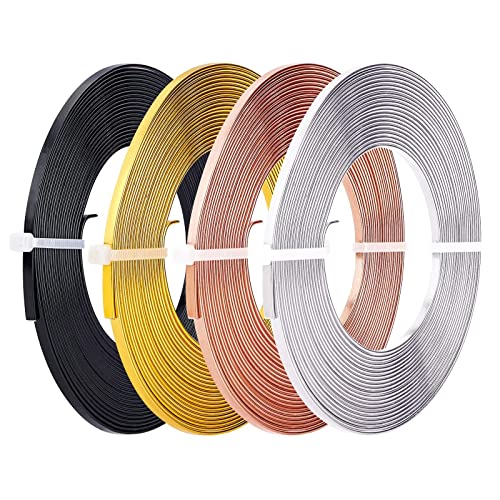 Acdokuk Filo piatto in alluminio, 20 m, 4 colori, larghezza 3 mm, filo piatto ossidato colorato, per creazione di gioielli, 5 m, colore