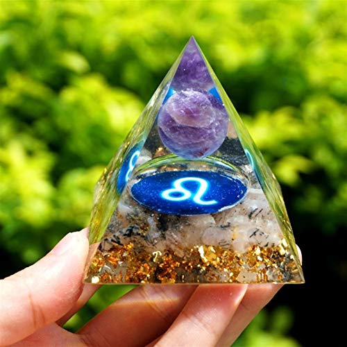 ACEACE Leo Zodiac Style Pyramid Amethyst Sphere con Piramide di Pietra preziosa Cristallo rutilata Nera (Size: 60mm)