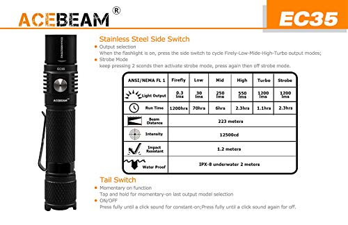 Acebeam EC35 con XPL HD LED con 1200 Lumen per 1 Batterie