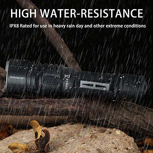 La torcia elettrica tattica più luminosa, utilizza LED CREE XHP35 HI, raggiungendo l'emissione massima di 2.000 lumen e un fascio a lunga distanza, pari a 603 metri.