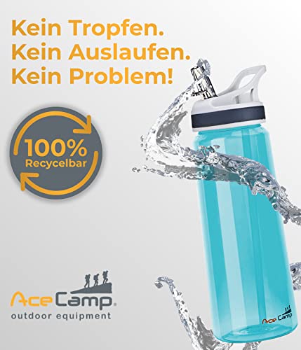 AceCamp 2 x Bottiglia d'Acqua TRITAN | Bottiglia d'Acqua a Prova di perdite Senza BPA | Bottiglia Sport CannucciaI 750 ml I Doppio Pacchetto Blu I 15556