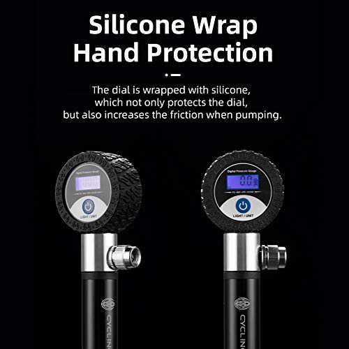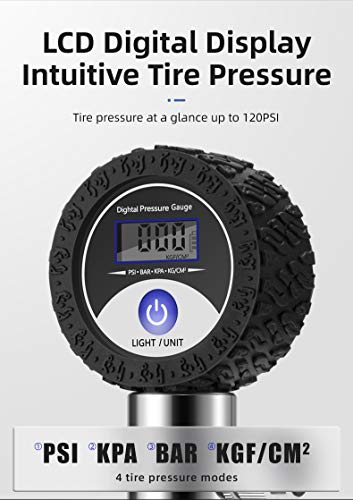 【Misuratore digitale accurato per pneumatici】 Display digitale LCD della pressione lettura più intuitiva Gonfia la tua bici / basket con rapidità e precisione e monitora anche la pressione dei pneumatici per prevenire lo scoppio dei pneumatici.Ci sono 4 modalità di pressione dei pneumatici che possono essere cambiate liberamente (PSI, KPA, BAR, KGF / CM2). silicone rivestito sullo strato esterno del quadrante che può ridurre i danni del quadrante in caso di colpi e cadute
