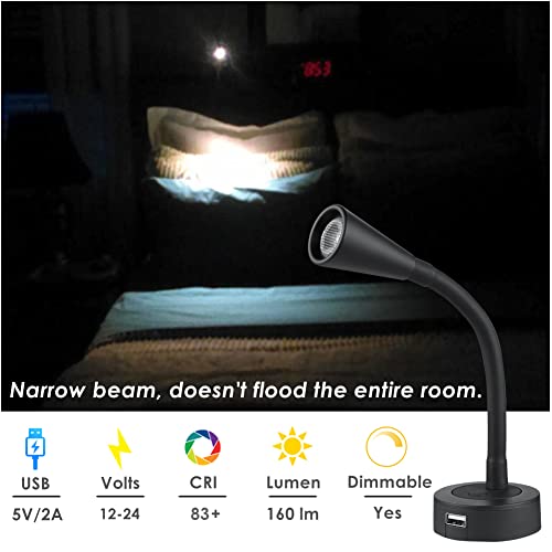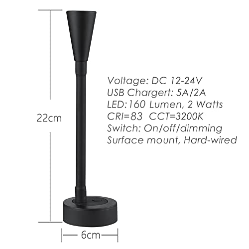 Acegoo Lampada da Lettura LED 12V Dimmerabile 2pcs Parete 3200K con Caricatore USB & Interruttore Dimmer, Flessibile e Collo D'Oca per Camper, Caravan, Barca, Camion, Auto Illuminazione Interna