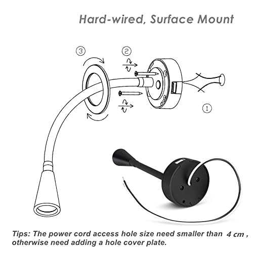 Facile installazione - Montaggio superficiale, utilizzare 2 viti per fissare rapidamente la lampada sulla parete o su una tavola di legno, viti nascoste dietro il coperchio della base, cura molto ordinata dopo l'installazione