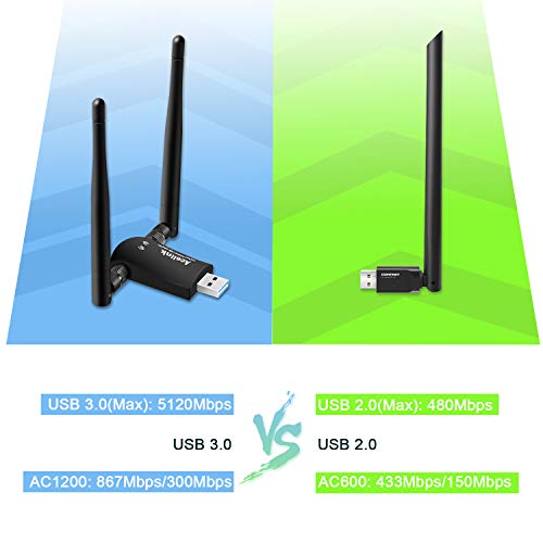 Acelink - Adattatore USB WiFi 1200Mbps USB 3.0 WiFi 11 AC Dual Band (5G/867Mbps + 2.4G/300Mbps) WiFi Dongle per PC/Laptop/Desktop Windows 10/8/7 Mac OS