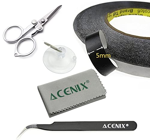 Acenix, nastro adesivo biadesivo largo 5 mm per cellulare colla display LCD e touch screen digitizer vetro HTC LG Nokia Sony Blackberry Motorola Huawei Google iPhone 3G 3GS 4 4S 5 5S 6 6S Plus iPad 2 3 4 5 Mini iPod Touch Galaxy S3 S4 S5 S6 Edge S6 Edge Plus / S S2 S3 S3 Edge Plus Nota S4. Acenix, kit professionale con forbici speciali, pinzette e panno per la pulizia.