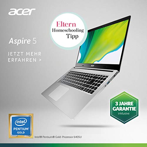 Acer Aspire 5 A515-54-P1VY Computer portatile Argento 39,6 cm (15.6") 1920 x 1080 Pixel Intel Pentium Gold 8 GB DDR4 256 GB SSD Wi-Fi 6, Windows 10 Home S, TASTIERA TEDESCA