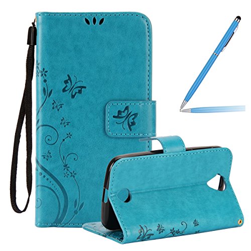 Acer Liquid Z330 Custodia,Acer Liquid Z330 Cover Portafoglio, Felfy Elegante Particolari Puro Colore Blu Belle Farfalla Modello Custodia in pelle PU Leather Cuoio / Wallet / Libro Portafoglio Flip Chiusura Magnetica con Supporto Stand e Porta Carte Integrati Protettiva Cover Case per Acer Liquid Z330
