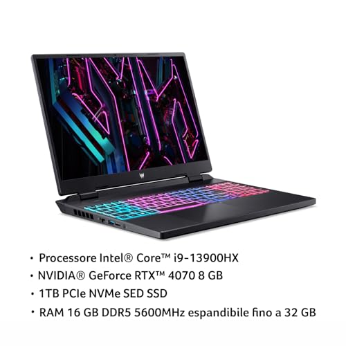 Acer Predator Helios Neo 16 PHN16-71-98AL Notebook Gaming, Processore Intel Core i9-13900HX, RAM 16 GB, 1024 GB SSD, Display 16" WQXGA IPS 165 Hz, NVIDIA GeForce RTX 4070 8 GB GDDR6, Windows 11 Home
