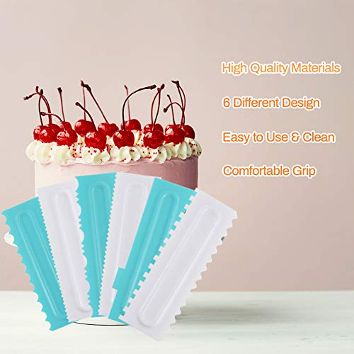Aceshop 6PCS Scraper Torta Spatole di Torta Cake Decorating Pettine Glassa Liscia Spatole di Crema di Burro Decorazioni per Torte Fondente Cake Pattern Styling Kit Strumenti di Cottura