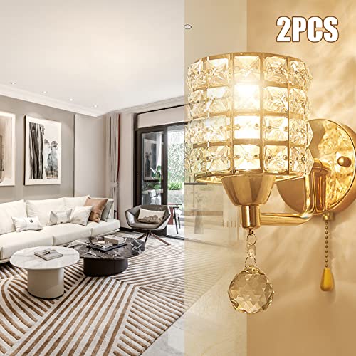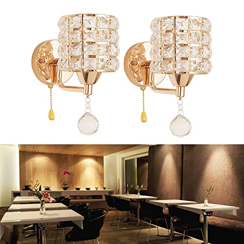 Acesunny 2 eleganti lampade da parete in cristallo, luce notturna a LED, lampada da parete, lampada da parete, lampada da parete in cristallo, per corridoio, camera da letto, lampada da parete (oro)