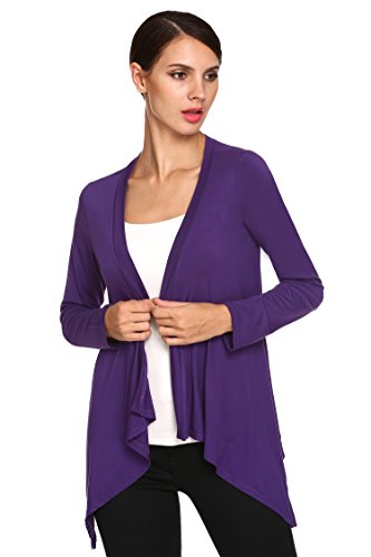 ACEVOG Donne Comodo Cardigan con Drappeggio Collare Manica Lunga Colore Puro