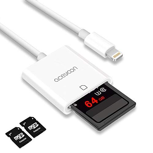 Aceyoon SD Card Reader Lightning MAX 64 GB Lettore Schede SD iPhone iOS 11 or 10.3.x Adattatore Telecamera i-Phone per iPhone x / 8 / 7 / 7 Plus / 6 / 6 Plus / Apple / iPad Lettore