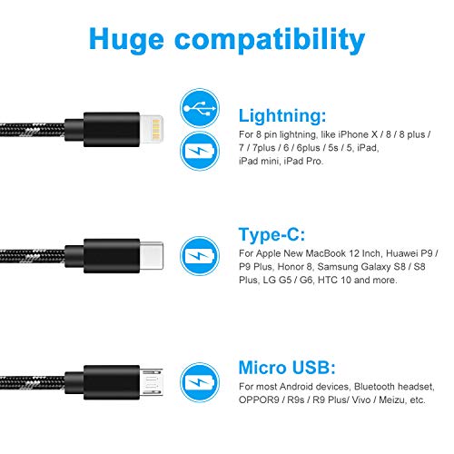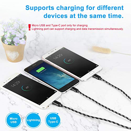 Aceyoon 3 in 1 Cavetto USB Type C/Phone/MicroUSB 1.5m Lungo Multi Port Cavo Phone Carica Rapida Filo Caricabatterie USBC Compatibile for Phone XR XS XS Max X, Huawei Mate 20/20 PRO
