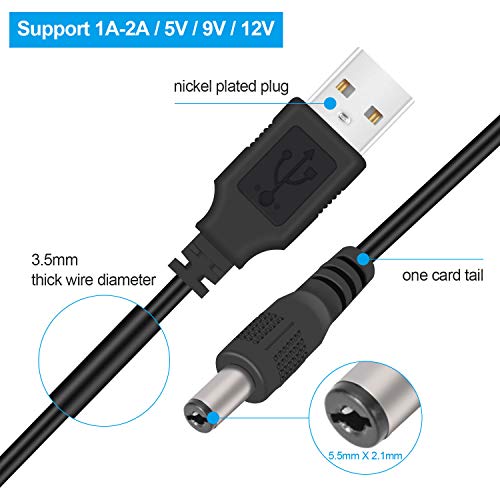 【Ampia Compatibilità】: il nostro cavo di ricarica da USB A a DC da 5,5 x 2,1 mm è adatto per dispositivi DC da 5,5 x 2,1 mm, come laptop da 5,5 x 2,1 mm, come mini ventole, strisce LED, tastiere, mini altoparlanti, router, due radio, ventole USB, telecamere IP, router, mini altoparlanti, ecc. Nota: questo cavo da DC a USB è solo per la ricarica e non può trasferire dati.