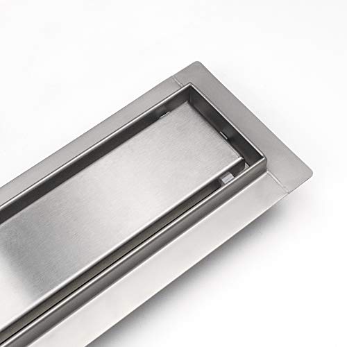 Acezanble Canaletta di Scarico Canalina per Doccia Acciaio Inox Sifone per Pavimento Rettangolare Per Bagno Piastrellabile 60cm