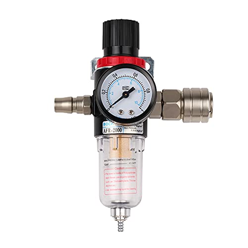 ACHANFLY Regolatore di Pressione per Compressore Filtro Aria Compressore Afr-2000 1/4" Pressione Aria Separatore Riduttore Pressione Compressore con Indicatore Regolatore