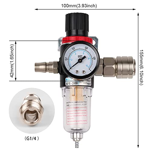 ✔【dimensione】Dimensioni della porta di ingresso e uscita del regolatore: 1/4" BSP, può filtrare piccole particelle, mantenere l'aria pulita. Piccole dimensioni, leggero, facile installazione e manutenzione.
