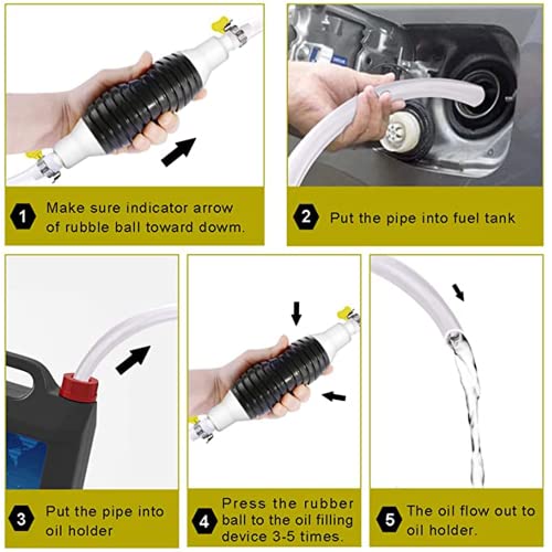 ◼【Materiale di alta Qualità】:La pompa a sifone manuale adotta un tubo in PVC di alta qualità e una pompa in gomma,un tubo in PVC trasparente addensato,che ha una buona tenacità e durata.Sfera di gomma allargata,antiscivolo,anti-invecchiamento,resistente alla benzina,resistente alla corrosione,può essere utilizzata a lungo
