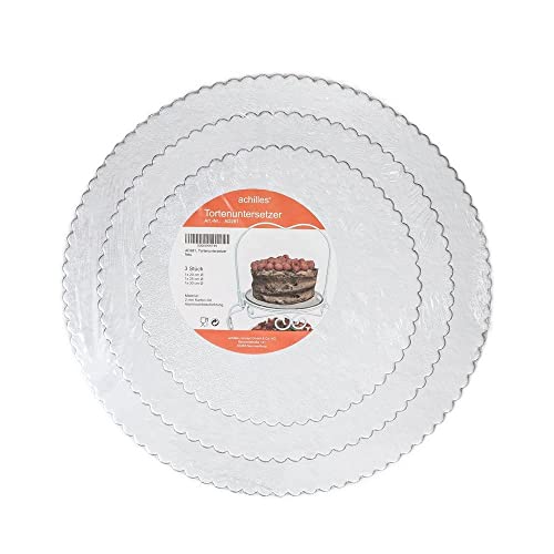 Achilles sottotorta, Set Da 3 sottotorta, sottotorta rigido, Piatti per Torta, (Argento)(1x 30 cm, 1x 25 cm, 1x 20 cm di diametro)