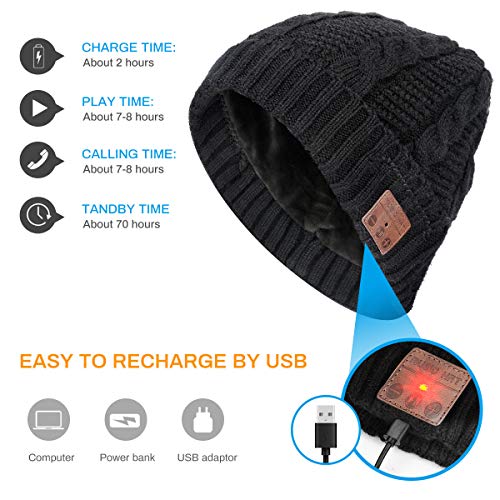 Achort - Berretto Invernale Lavorato a Maglia, con Bluetooth, per Uomo, Donna, Berretto e Guanto per Touchscreen, per attività all'Aria Aperta, Inverno, Caldo, con Fodera in Pile per Pattinaggio