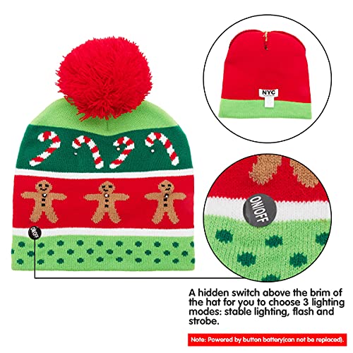 Achort Cappello Beanie Cappelli di Natale Unisex LED Cappucci Luminosi Uomo novità Cappello Lavorato a Maglia Donna Cappelli Morbidi Caldi Invernali Bambini per Indoor e Outdoor (Nero e Verde)