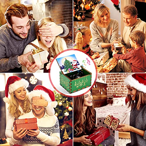 Achort Carillon Natalizio in Legno, Carillon a Manovella Antico Intagliato Scatola Musicale Merry Christmas Famiglia Carillon Artigianato Decorazione Natalizia Regali per Bambini, Amici, Adulti