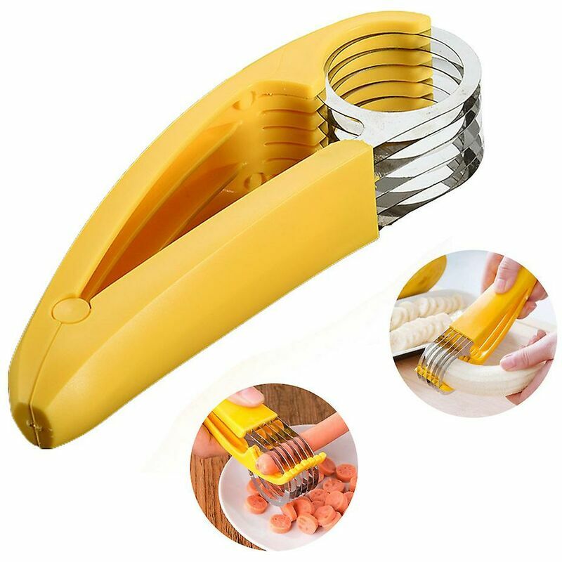 Utensile da cucina per insalata, taglierina per banane in acciaio inossidabile, affettatrice per frutta e salsiccia Facile da usare: affetta perfettamente le banane intere in pochi secondi con questo prezioso strumento da cucina. Adatto per verdure e frutta - Può tagliare rapidamente banane, salsiccia di prosciutto in piccoli pezzi. Sicuro: fetta in acciaio inossidabile, la lama non è affilata, non farà male alle dita, gli anziani e i bambini possono essere molto comodi da usare . Materiale: ABS + BORDO IN ACCIAIO INOSSIDABILE, non arrugginisce durante il periodo. Suggerimento: lavare il prima possibile dopo l'uso, altrimenti i residui di cibo diventeranno difficili da rimuovere nel tempo. Specifiche: Materiale: ABS + acciaio inossidabile Dimensioni: lunghezza 17 cm, larghezza 4 cm Diametro: 4 cm Il pacchetto include: 1 x taglia banana Nota: 1. A causa della diversa illuminazione e dell'effetto del monitor, il colore effettivo dell'articolo potrebbe essere leggermente diverso dal