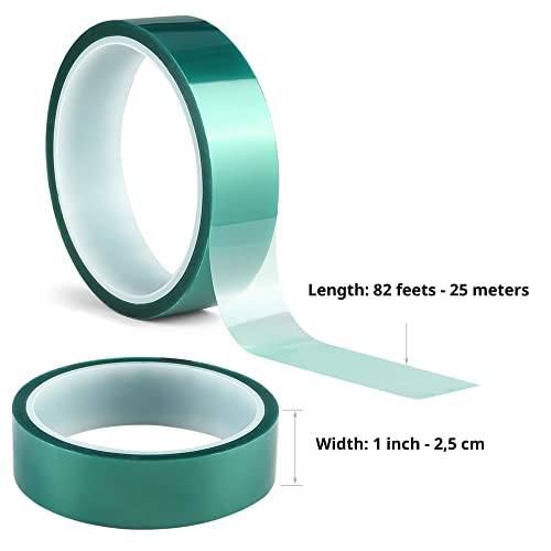 ️ 【Nastro in PET con adesivo in silicone】 Nastro adesivo alte temperature: ogni rotolo è dotato di nastro adesivo in poliestere verde da 66 mt, in grado di resistere ad oltre 200 C°.
