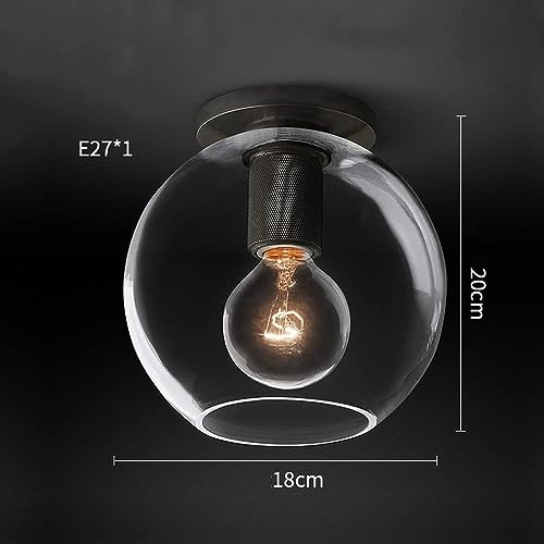 ACLBLK Plafoniera moderna industriale in vetro trasparente con paralume in oro nero Lampada da soffitto a sfera vintage in oro nero per casa Corridoio Cucina Isola Ingresso casa Camera da letto (ø18CM