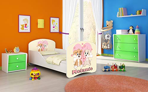 ACMA Letto per bambino Cameretta per bambino con materasso Cassetto (12 I cagnolini innamorati, 140x70)