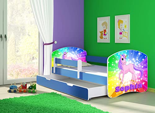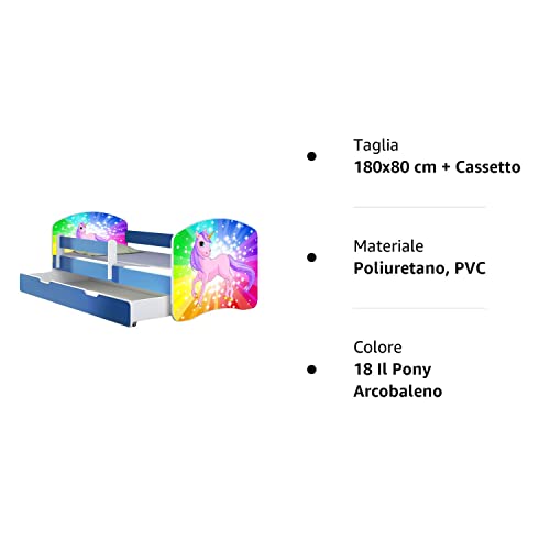 ACMA Letto per Bambino Cameretta per Bambino con Materasso Cassetto II BLU (18 Il pony arcobaleno, 180x80 + Cassetto)