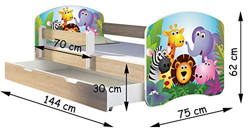 ACMA Letto per Bambino Cameretta per Bambino con Materasso Cassetto II Rovere Sonoma (26 L'elefantino colorato, 140x70 + Cassetto)