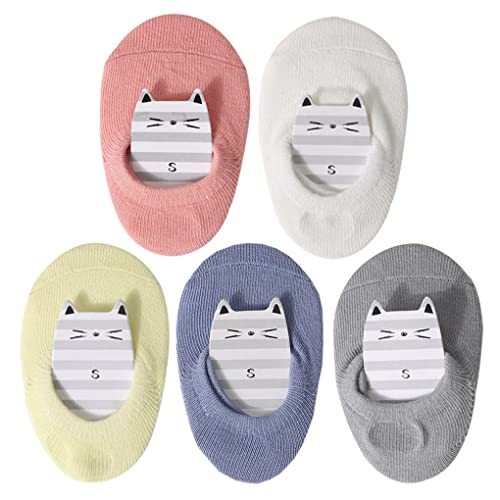 ACMEDE Calzini Invisibili Antiscivolo Bambino 5 Paia, Calzini Cotone Bambino Neonato 0-3 Anni Calzini Morbido Confortevole Traspiranti Primavera Estiva Autunno Calzini Antiscivolo (0-24 mesi)