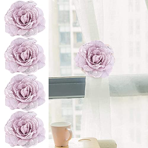 ACMEDE Elegante Fiore Fibbia in Tieback per Tenda Fermatenda Decorativa Tende Holdback per Tende, 4 Pezzi Fiori di Rosa Fermatende Magnetici per Tenda Decorazione di Casa Ufficio (40cm, Viola Rosa)