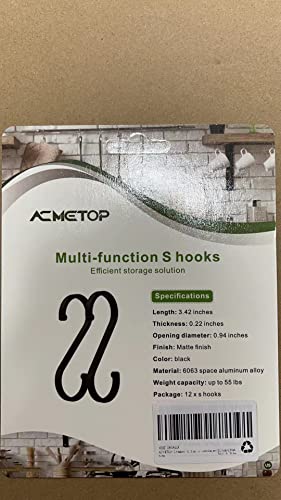 ACMETOP Ganci a S, 12 Pezzi Ganci a S Neri, Ganci a S per Appendere Pentole e Padelle, Piante, Tazze da Caffè, Vestiti, Asciugamani in Cucina, Camera da Letto, Bagno, Ufficio e Giardino Nero Opaco.