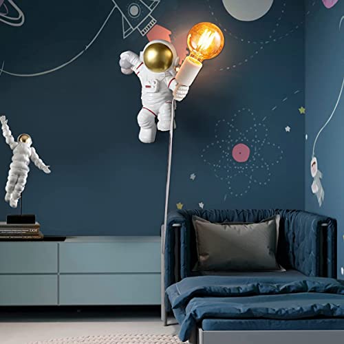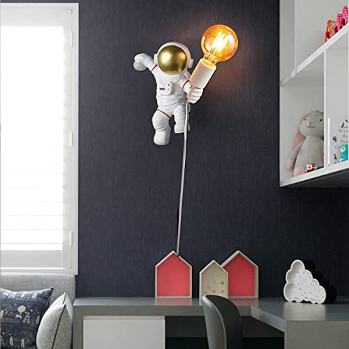 ACMHNC Astronauta Lampada Da Parete Bambini Con Spina E Interruttore, Applique Da Parete Interni E27 Bianco Per Ragazzi Ragazze Camera Luce Notturna Decorativa Dolce Luci Parete Con Cavo 1,5 M