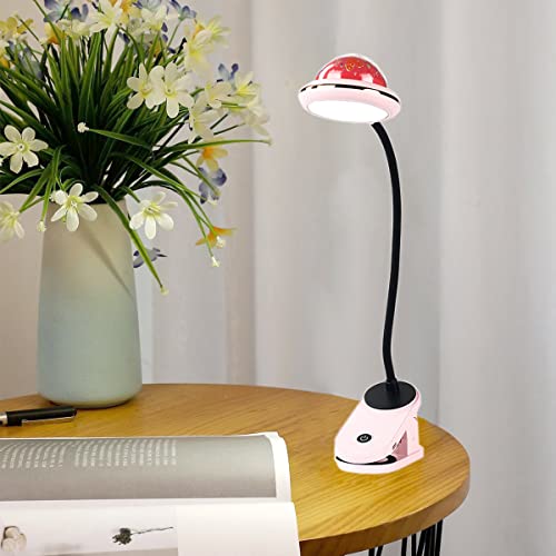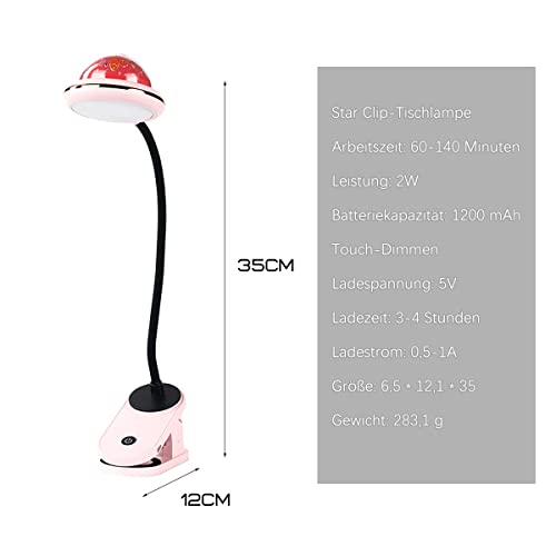 ACMHNC Lampada da Lettura Bambini Con Pinza, USB Ricaricabile LED Lampada da Scrivania Con Proiezione Di Stelle, Lampada da Comodino Touch Dimmerabile, Collo D'oca a 360° Lampada Con Clip (Rosa)
