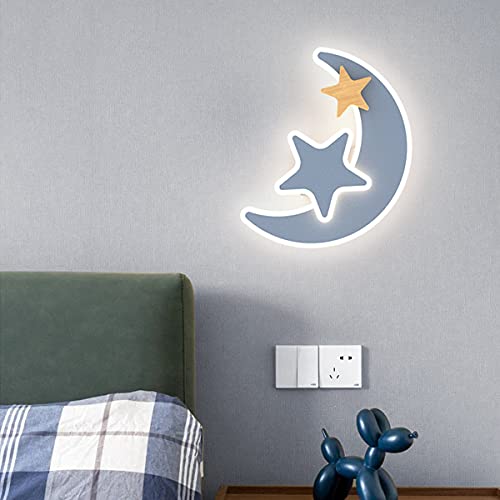 ACMHNC Lampada Da Parete LED Luna Applique Da Parete Bambini, Stella Luna Luce Da Parete Interni Per Ragazzo Ragazza,17W Lampada Per Bambini Camera Da Letto Lampada Da Comodino,Star in Legno,Grigio