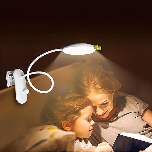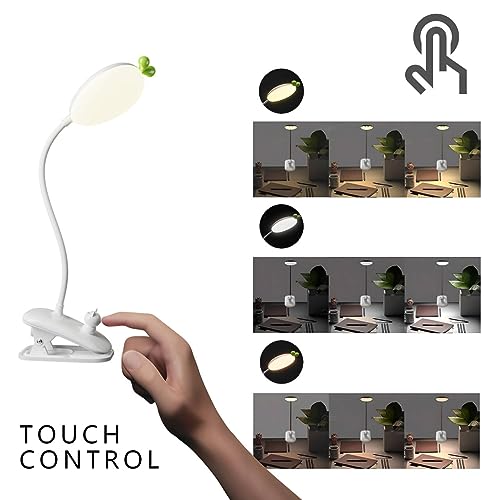 ACMHNC Lampada Con Pinza Ricaricabile USB, Lampada Lettura Flessibile 3 Colori E 5 Luminosità Toccare Dimmerabile Lampada Da Tavolo LED Comodino Luce Notturna Portatile Per Libro Ufficio Letto,Bianca