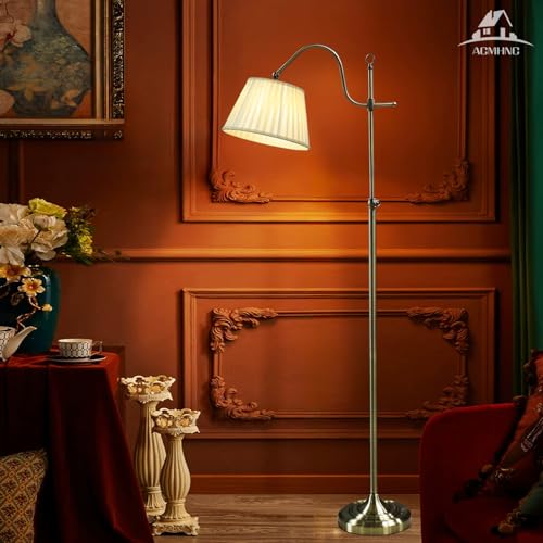 ACMHNC Lampada da Terra Vintage Salotto Bronzo, LED Piantana Lampada da Terra Dimmerabile con Telecomando e Funzione di Memoria, E27 Lampada Soggiorno in Metallo, 2W/960LM, Paralume in Tessuto