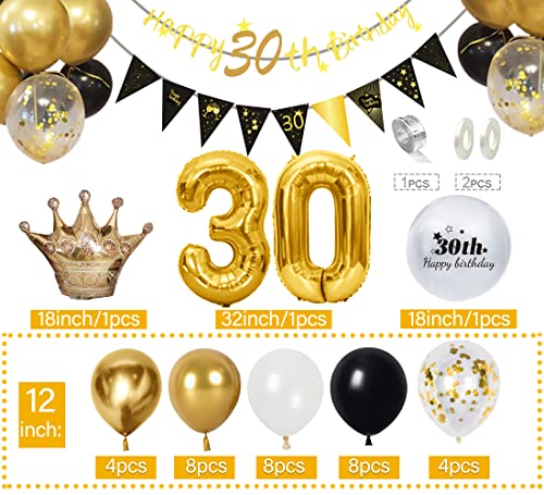 AcnA 30 Decorazioni Compleanno,Palloncini 30 Anni Compleanno Donna Uomo,Oro e Nero Palloncini,Buon Compleanno Banner,Palloncini 30 Anni Compleanno Decorazioni Festa,Palloncino Numero 30 Riutilizzabile