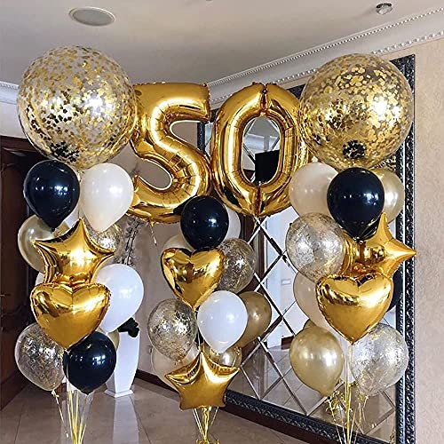 AcnA 50 Decorazioni Compleanno,Palloncini 50 Anni Compleanno Donna Uomo,Oro e Nero Palloncini,Buon Compleanno Banner,Palloncini 50 Anni Compleanno Decorazioni Festa,Palloncino Numero 50 Riutilizzabile