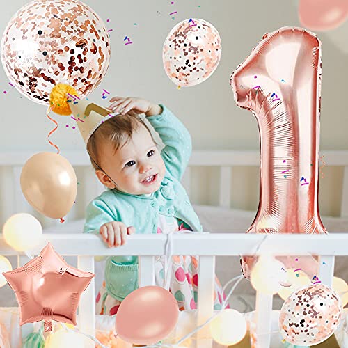 AcnA Palloncini Compleanno Decorazioni 1 Anno,Palloncino 1 Anno Oro Rosa,Palloncino Numero 1,Palloncini Compleanno 1 Anno,Compleanno Palloncini in Lattice Coriandoli Riutilizzabile