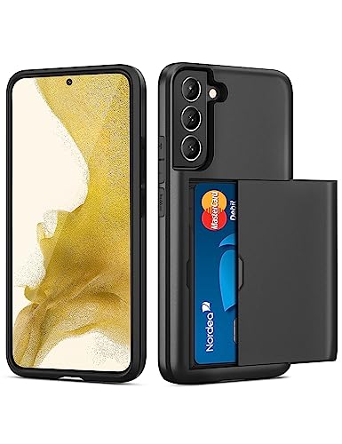 ACOCOBUY per Custodia Samsung Galaxy S22 5G Custodia Antiurto Galaxy S22 Custodia a portafoglio protettiva S22 con portacarte Slide Custodia a Doppio Strato Armatura in Gomma Bumper Cover per S22 Nero