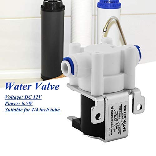 SPECIFICHE: : ❶ Materiale: rame + plastica ❷ Tensione: DC 12V ❸ Potenza: 6,5 W❹ Pressione: 0-0,8 MPaM Posizione di utilizzo: Valvola depuratore d'acqua ❻ Diametro interno tubo idoneo: 1/4 pollici